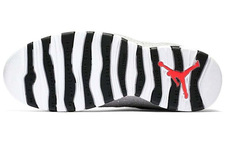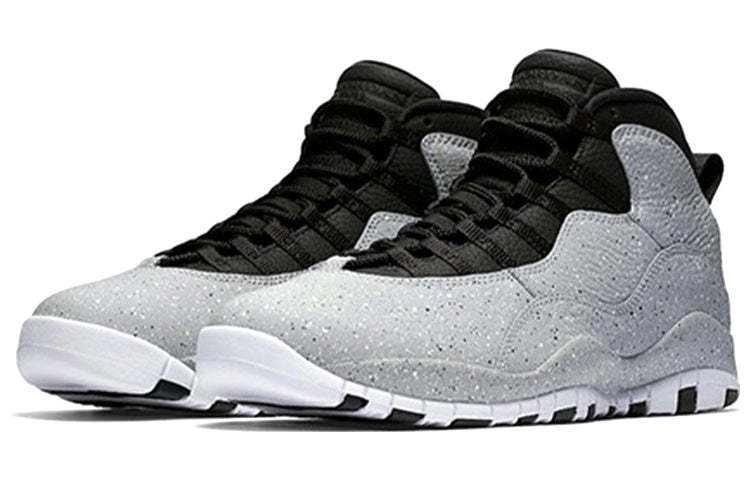 Nike Air Jordan 10 Retro Cement Featuring clean lines and lateral stripes on the soles as a tribute to Jordan, the Air Jordan 10 was designed while MJ was away from the game.