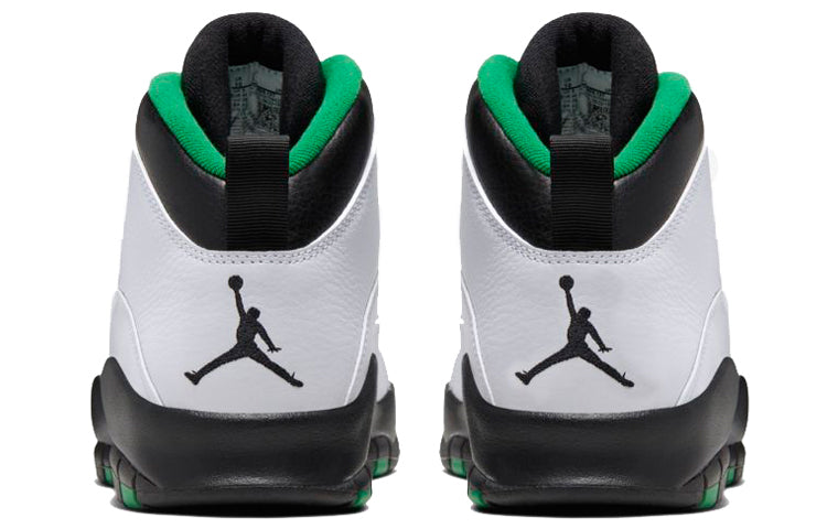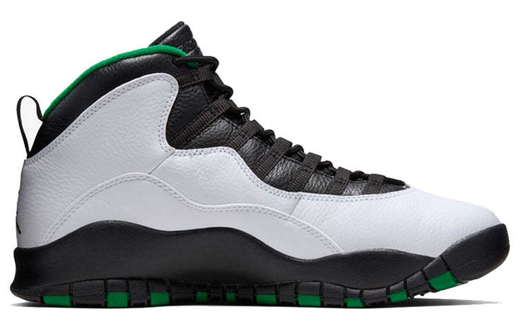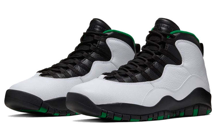 The Air Jordan 10 Retro 'Seattle' 2019 is back and better than ever! First released in 1995 as part of the 'City' series, this sneaker is inspired by the Seattle Supersonics. The collar lining and outsole feature a Supersonics-inspired palette, while Jordan branding is debossed on the tongue and embroidered on the heel. A sculpted Phylon midsole with embedded Air units offer cushioning, while a rubber outsole with MJ's career accomplishments round out the look. Whether you're a die-hard basketball fan or just looking for a stylish and comfortable sneaker, the Air Jordan 10 Retro 'Seattle' 2019 is a must-have!