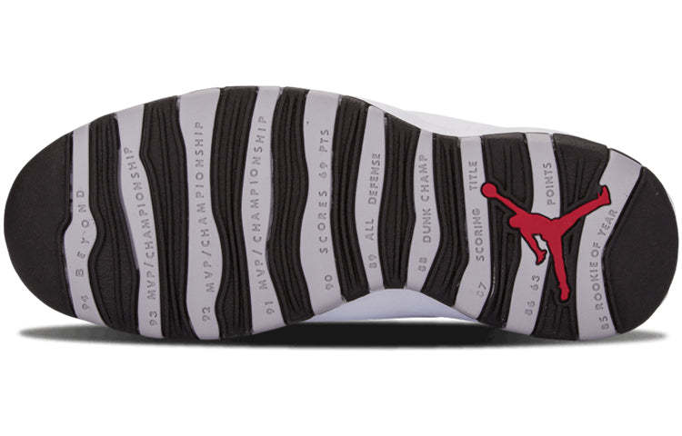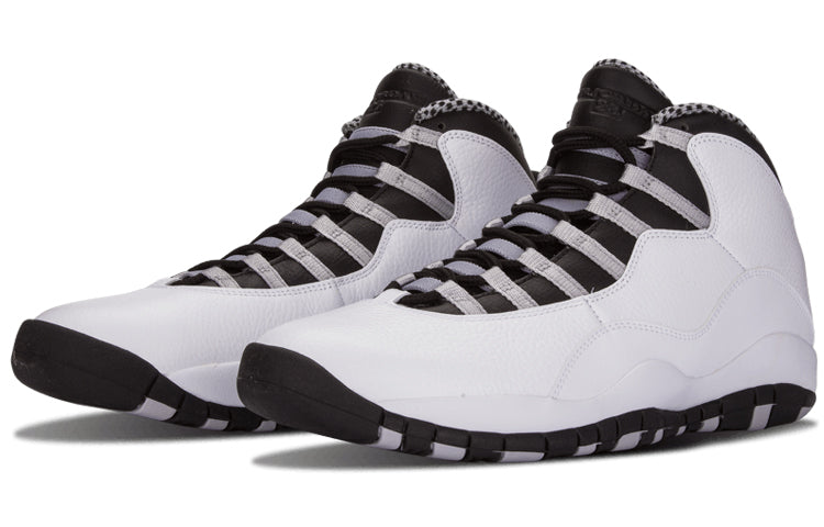 The Air Jordan 10 Retro 'Steel' 2013 is a retro release of the original 1994 colorway. This design combines a white tumbled leather upper with black and light Steel Grey accents. The sneaker also comes with a white midsole and a striped black and light steel grey outsole that features a timeline of Michael Jordan's career achievements - making it a must-have for any fan of His Airness. The shoe was also retroed in 2005, so it's truly a classic design that has withstood the test of time. If you're looking for a great addition to your Jordan collection - or simply want a comfortable, stylish sneaker to rock on the court - then this is the perfect choice.