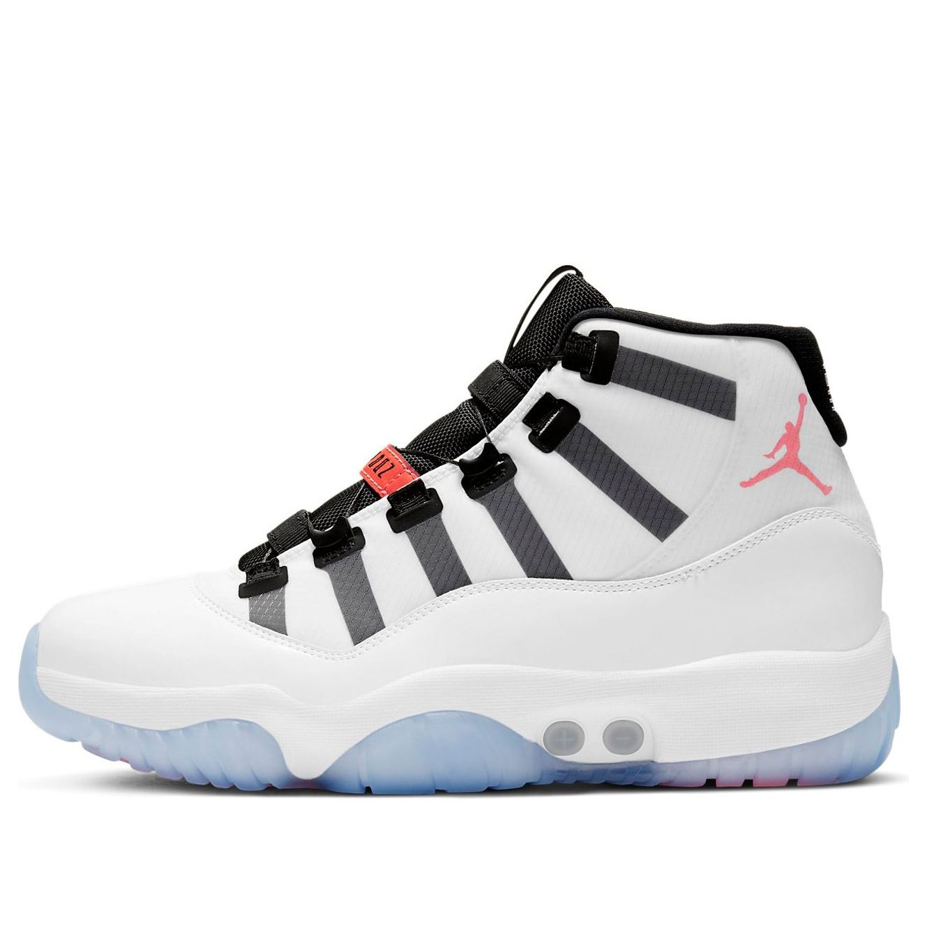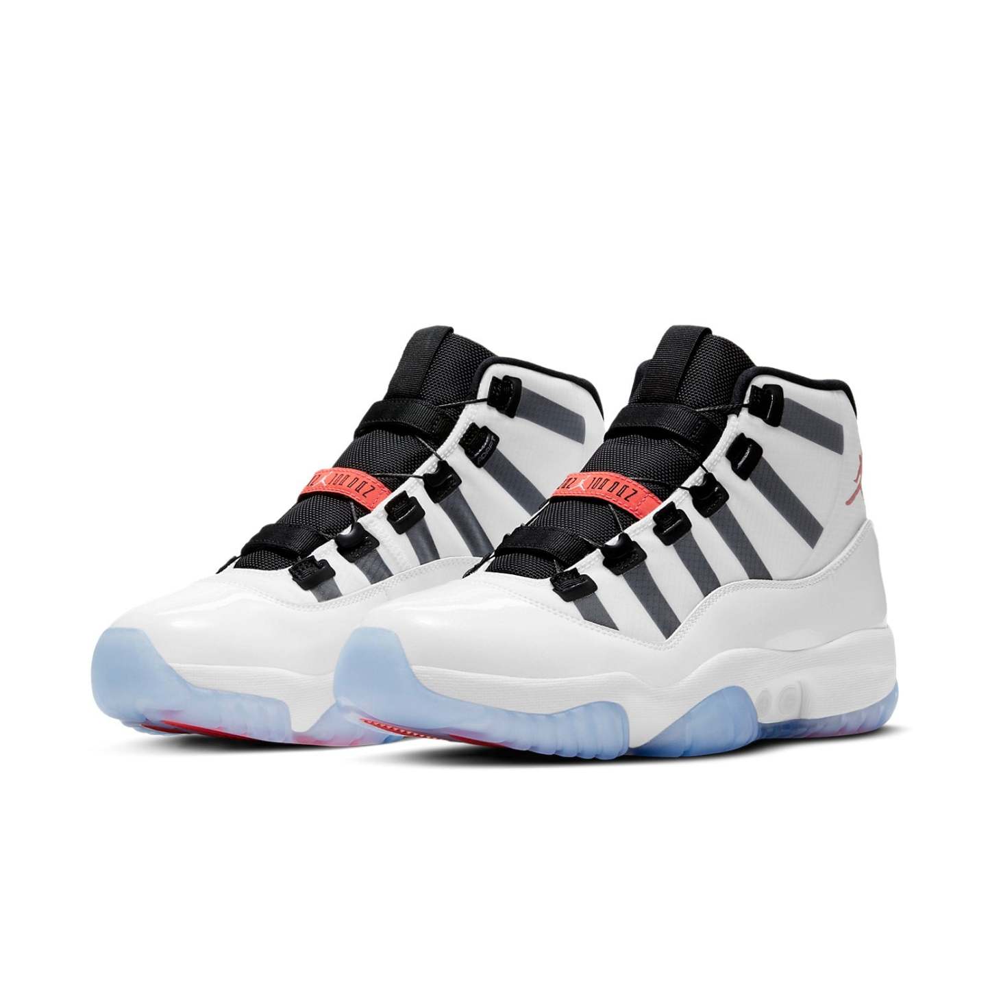 The Air Jordan 11 Adapt 'White' celebrates the 25th anniversary of the iconic basketball shoe with a modern update. The original design DNA remains intact, with a semi-translucent textile upper and white patent leather overlay. The midsole houses luminescent Adapt buttons that control the Nike Adapt lace engine. Users can make adjustments through the Nike Adapt app, including changing the colors and flashing patterns of the lights on the buttons. The result is a shoe that looks great on or off the court, making it a must-have for any fan of MJ's signature line.