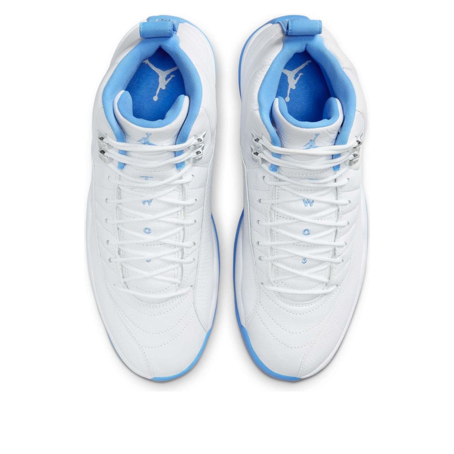 Relive Carmelo Anthony's rookie year with the 2025 re-release of the Air Jordan 12 "Melo." This iconic sneaker, originally from 2004, boasts a premium white leather upper with University Blue accents and metallic silver details. Superior traction and stylish design make it perfect for the court or the streets.
