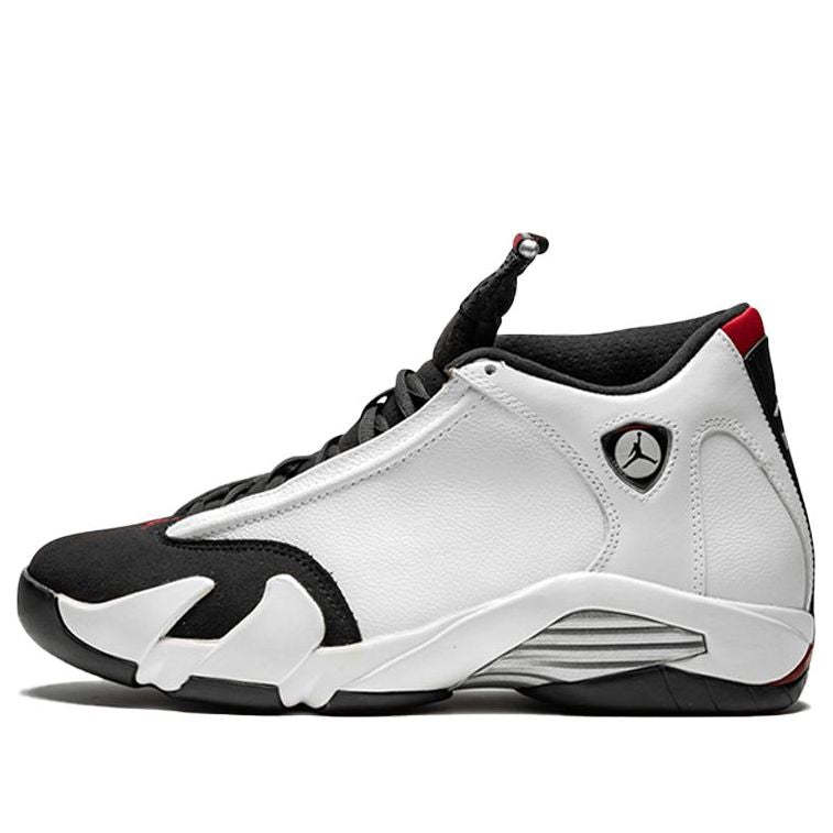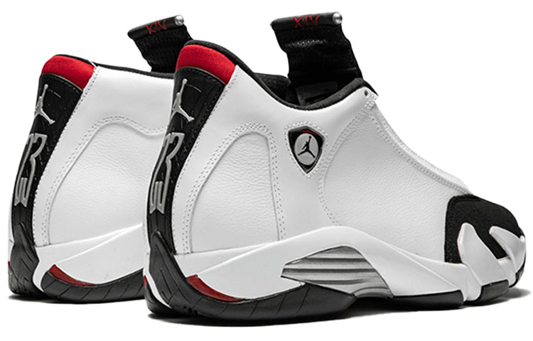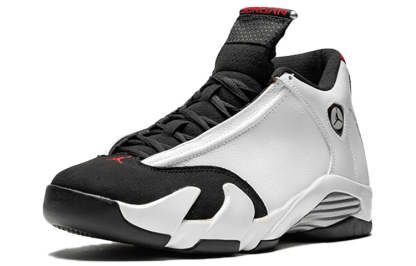 The Air Jordan 14 Retro 'Black Toe' made its debut in 1998, and was released alongside other Air Jordan 14 models in 2014. The 'Black Toe' was retroed in 2006, but this 2014 release is in its true form without the ribbed panels as seen in the 2006 version. This model is constructed with a white leather upper, black toe box and midsole, and red outsole. TheJumpman is embroidered on the tongue while the ‘23’ is stitched on the heel counter.