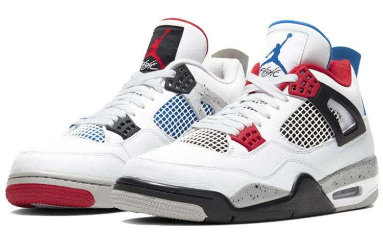 The Nike Air Jordan 4 Retro "What The 4" combines four of the most beloved colors: "Bred", "Military Blue", "Fire Red", and "White Cement". Incorporated into the leather upper are mesh and suede elements, while the classic Air midsole sits underneath to provide you with comfort.