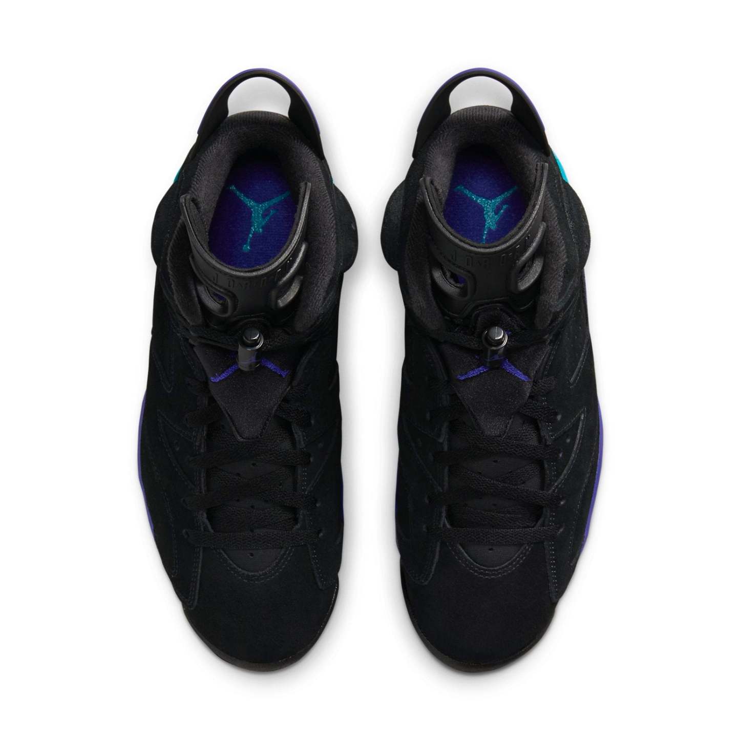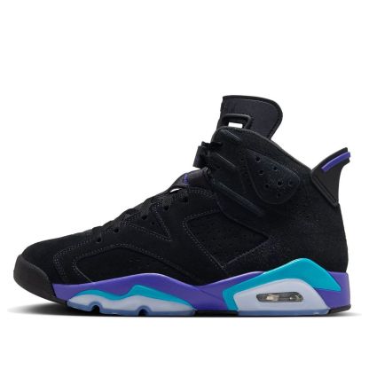 Step into basketball history with the Jordan 6 Retro Aqua. This iconic silhouette gets a vibrant update with a Black, Bright Concord, and Aquatone colorway. The suede upper features Bright Concord accents on the Jumpman logo and heel tab, while the Aquatone midsole adds a bold, unexpected twist. This retro design blends premium style and function, making it a standout choice for both collectors and sneakerheads.