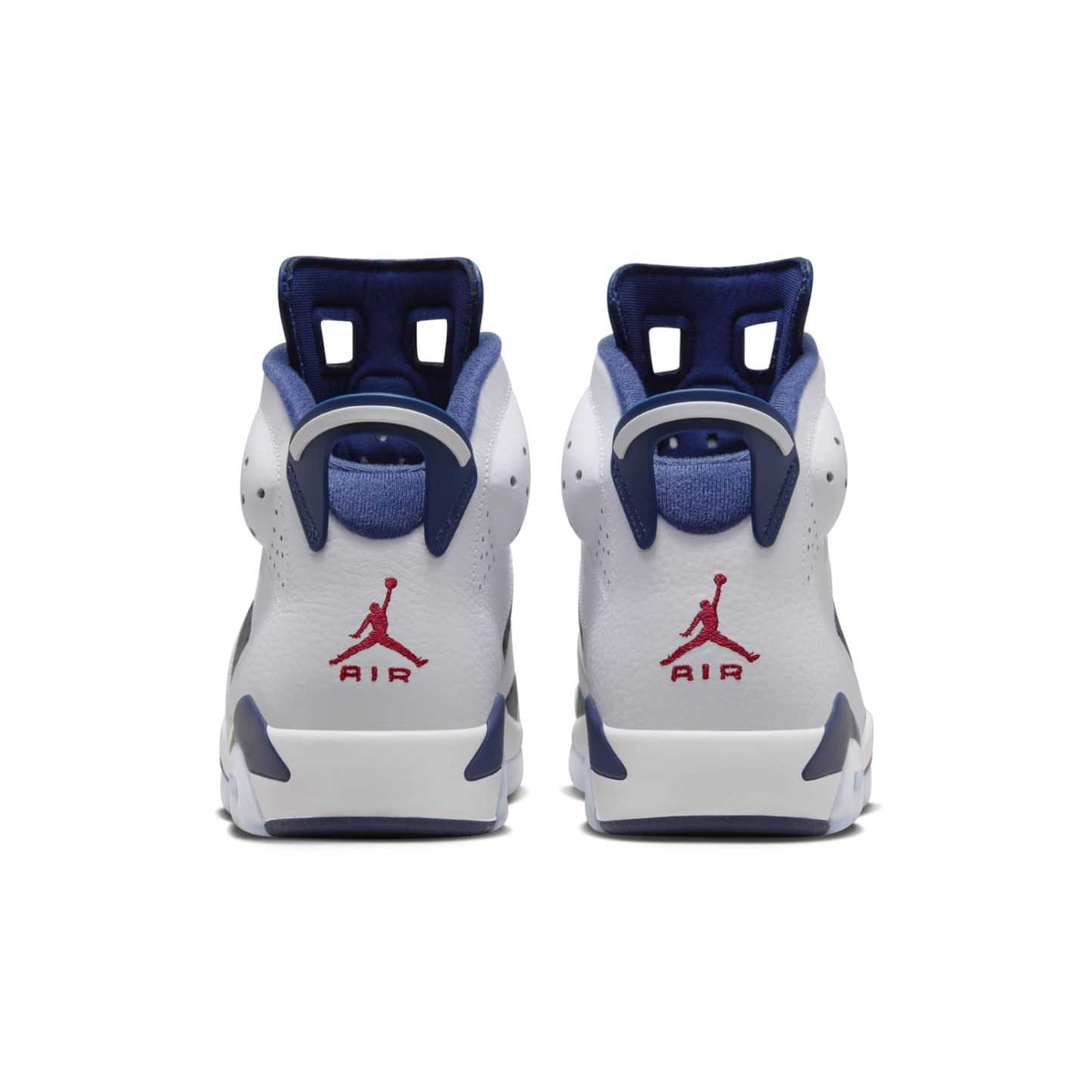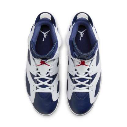 Celebrating the USA's Olympic heritage, the Air Jordan 6 Retro ‘Olympic’channels the spirit of the 2000 Sydney games. Released in August 2024, this shoe features a premium tumbled leather upper in a deep midnight navy. Crisp white overlays contrast the navy base, while pops of varsity red on the Jumpman logos and lace guard tie the design to the American flag's colors. The classic Air Jordan 6 silhouette is completed with a comfortable white midsole and a navy rubber outsole. This commemorative edition offers a chance to own a piece of Jordan history with a timeless design.