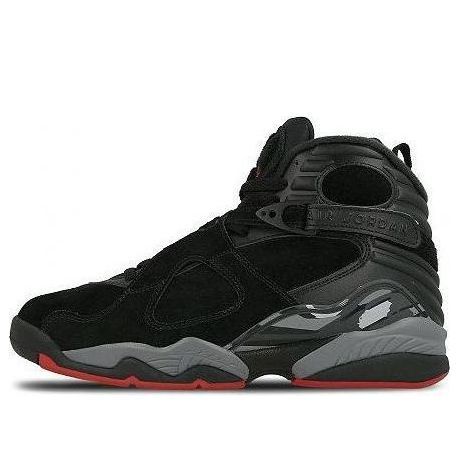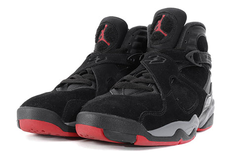 The Nike Air Jordan 8 Retro 'Bred' is the perfect sneaker for both style and comfort. The black leather and nubuck upper is offset by a Wolf Grey midsole, and the Gym Red accents at the tongue, insole, and outsole add a pop of color. Whether you're hitting the court or just running errands, this sneaker is a must-have for any Jordan fan.