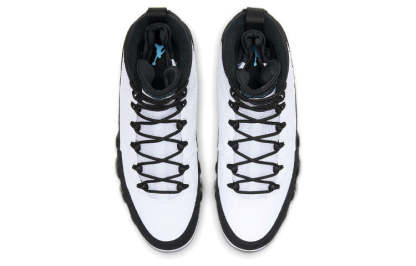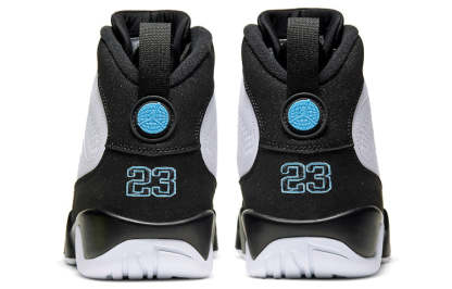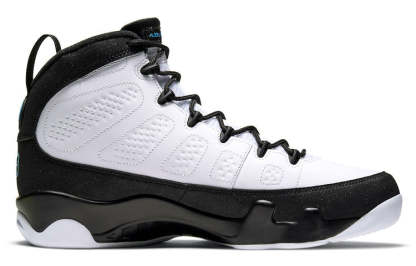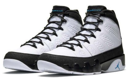 The Air Jordan 9 Retro 'University Blue' is a must-have for any sneakerhead. This sneaker draws inspiration from the '90s with its Orlando Magic-inspired colorway. The perforated white leather upper is clean and classic, while the University Blue hits add a pop of color. The black overlay gives the sneaker a bit of edge, while the Air Jordan tongue tag and Jumpman icon on the lateral midsole complete the look.
