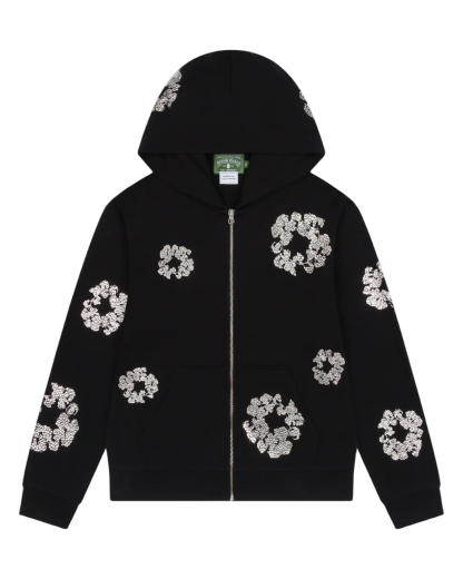 DENIM TEARS CASHMERE SWARVOSKI COTTON WREATH ZIP HOODIE BLACK