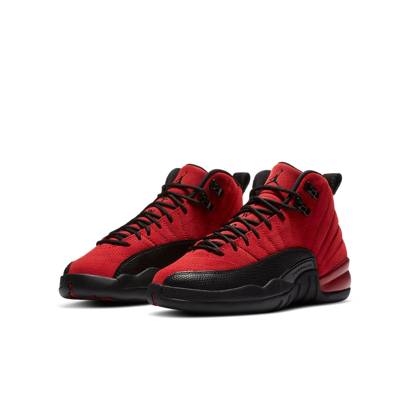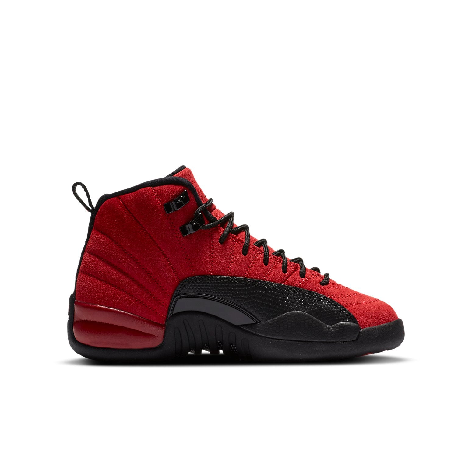 Jordan sneakers have a long and storied history, with each release tending to be a hit with sneakerheads and basketball fans alike. The Air Jordan 12 Retro GS ‘Reverse Flu Game’ is no exception, delivering an exciting color flip of a legendary shoe. Made for big kids, this edition features red suede construction throughout the upper, embellished with tonal zigzag stitching and reinforced with lizard-textured leather overlays in black. While the grade-school edition comes complete with a carbon fiber shank plate, cushioning is limited to an Air unit in the heel, versus full-length Zoom Air in the men’s version.