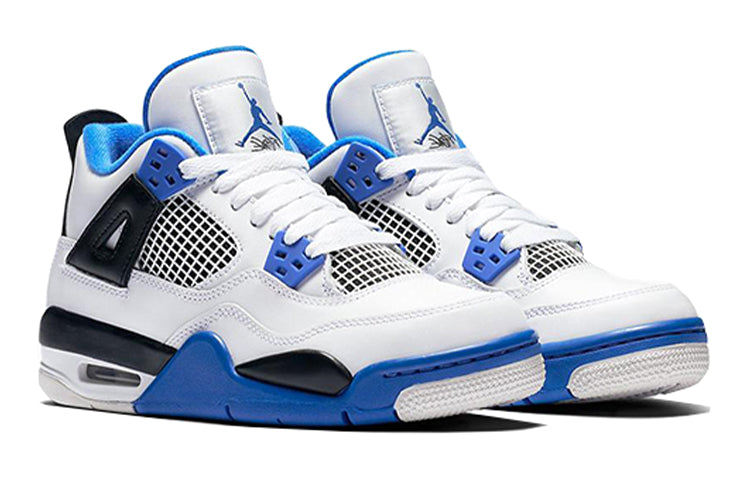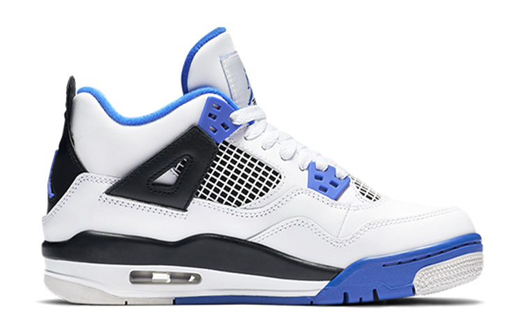 The Air Jordan 4 Retro GS 'Motorsports' is a special edition sneaker that was created to celebrate the 4th anniversary of Michael Jordan's Jordan Motorsports team. The team's colors of white, black, and Game Royal are prominently featured on the shoe, which was originally released in 2006 as a friends and family colorway. The 2017 version of the shoe does not include the Mars Blackmon accent on the heel, but is otherwise faithful to the original design. The Air Jordan 4 Retro BG 'Motorsports Alternate' was released a few months later in a black colorway. Both versions of the shoe are available now from select retailers.