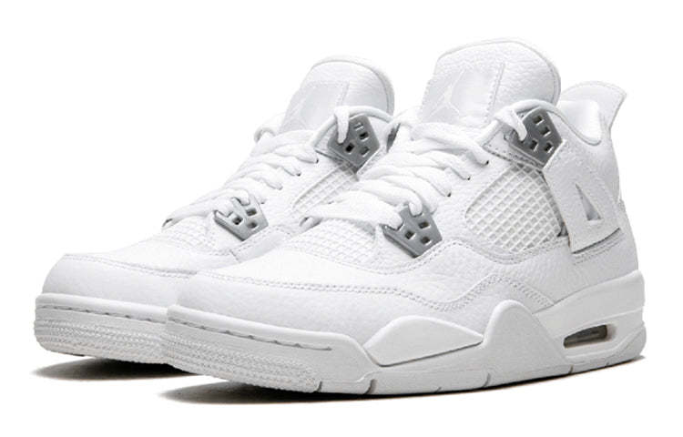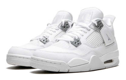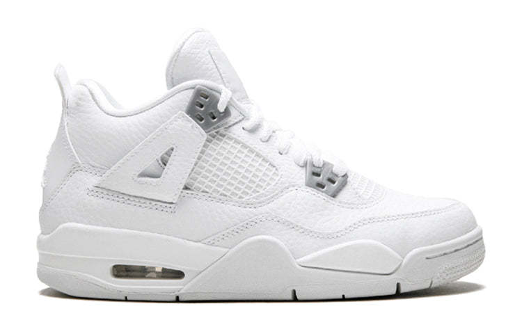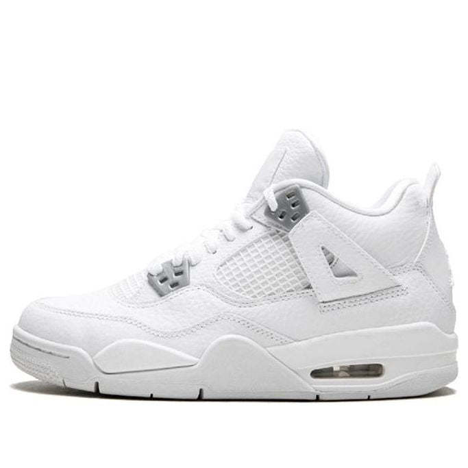 The Air Jordan 4 Retro BG 'Pure Money' is a modern classic. First released in 2006, this retro sneaker is back for 2017 and better than ever. Dressed in a white leather upper with chrome accents, this sneaker is perfect for little ones who want to look fresh all summer long.
