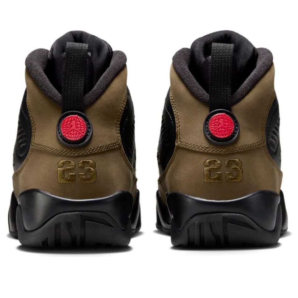 The Air Jordan 9 Olive Black True Red is a classic colorway that blends style and history. Originally released in the early '90s, this shoe represents a unique moment in Michael Jordan's career. The olive base with black overlays and vibrant red accents create a rugged yet sophisticated look. This coveted silhouette features iconic details like the "23" on the heel and a globe emblem, reflecting Jordan's global influence. The Air Jordan 9 Olive Black True Red is a timeless design that continues to inspire sneaker enthusiasts.